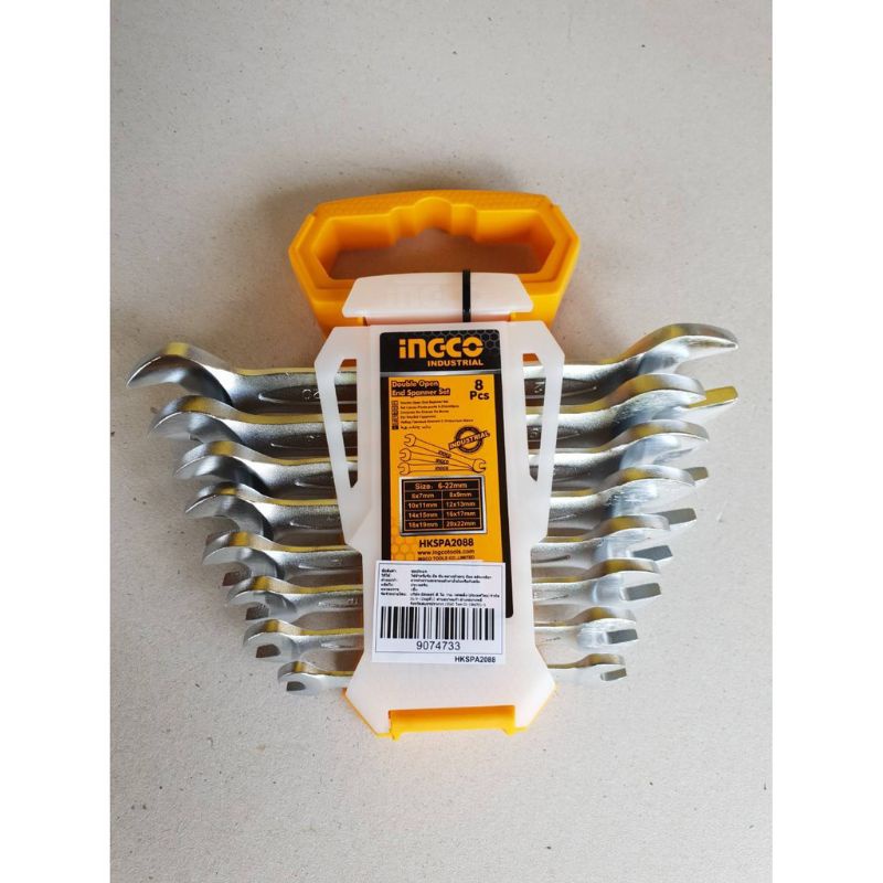 BỘ 8 CỜ LÊ HAI MIỆNG INGCO 6-22MM MODEL: HKSPA2088Gồm 8 cờ lê hai miệng, size: 6-22mm