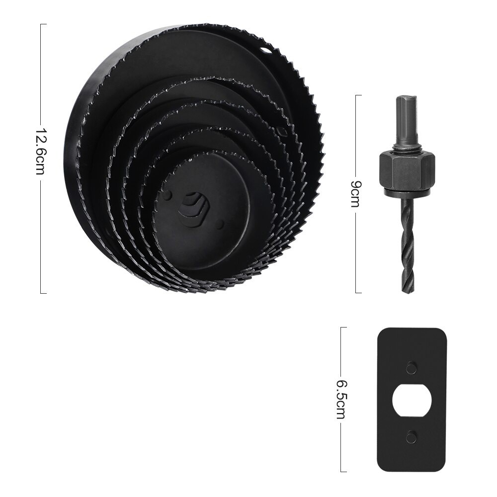Nhà cửa & Đời sống > Dụng cụ & Thiết bị tiện ích > Dụng cụ > Khác || BỘ 8PC - KHOÉT LỖ GỖ VÀ THACH CAO, với 5 vành khoét Ø64, Ø76, Ø89, Ø102, Ø127(mm), khoét gỗ, thạch cao, alumium, micaCòn hàng
