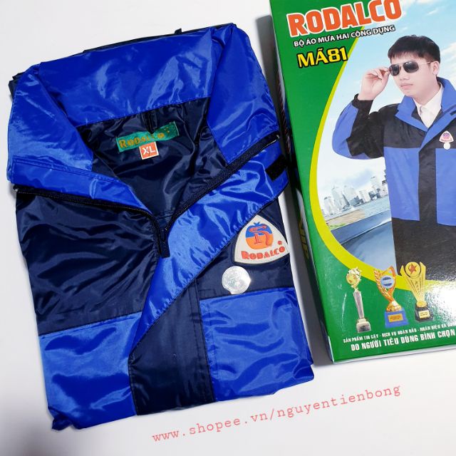 Giới thiệu BỘ ÁO MƯA RODALCO 2 LỚP MÀU XANH TÍM THAN BỘ ÁO LIỀN QUẦN KÈM MŨ