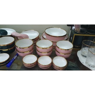 Giới thiệu Bộ bát đĩa gốm sứ Hồng lòng trắng/Xanh ngọc/Ghi vân đá+set muôi cao cấp,dùng gia đình bàn tiệc,gia đình