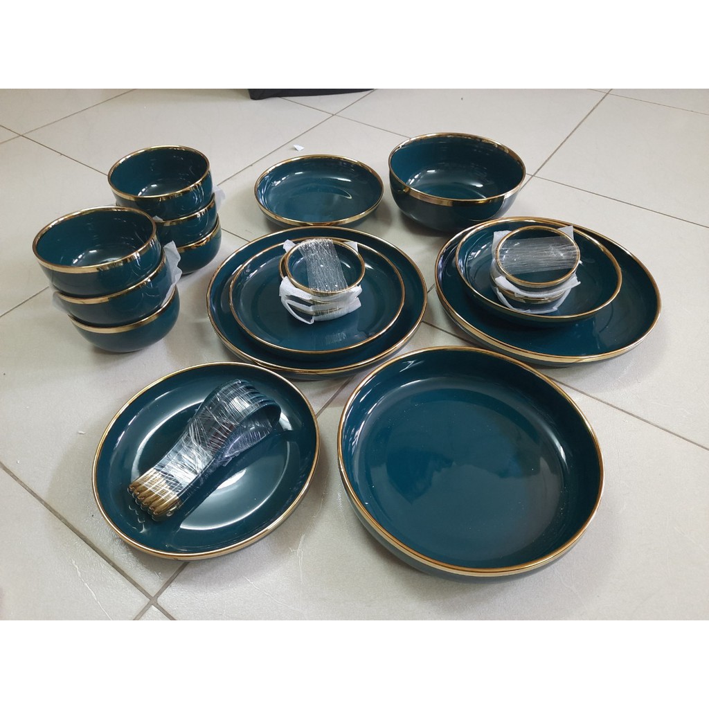 Nhà cửa & Đời sống > Bộ đồ bàn ăn > Tô || Bộ bát đĩa màu xanh cổ vịt,xanh đậm bằng gốm sứ cao cấp sang trọng,dùng trong gia đình,nhà hàng.Còn hàng