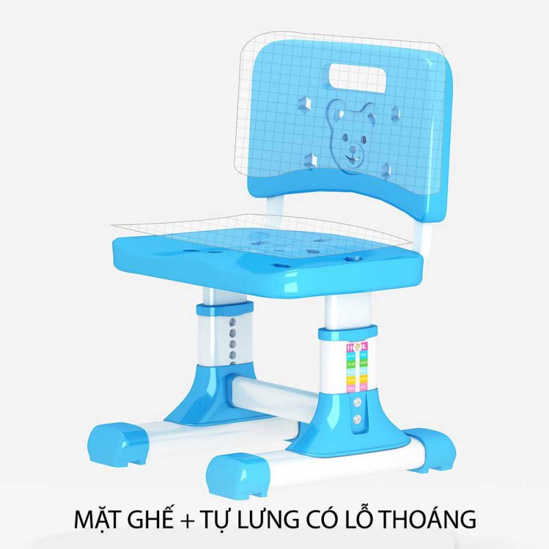 - Mặt ghế và tựa lưng có lỗ thoáng, giúp bé thoải mái khi ngồi lâu.