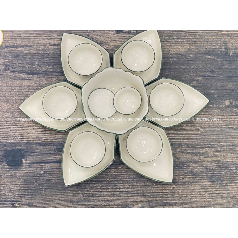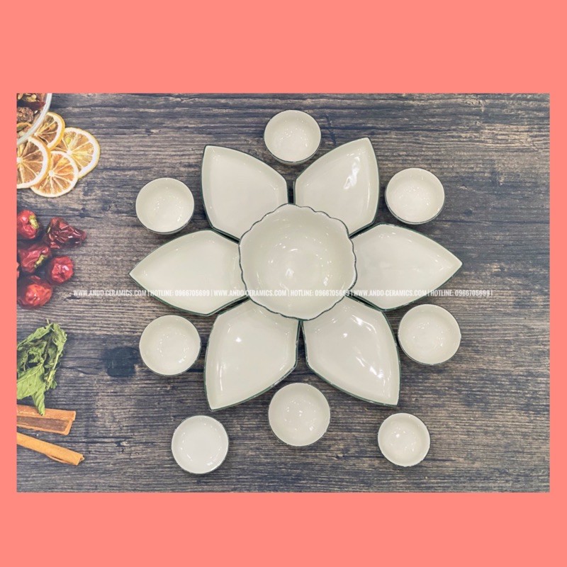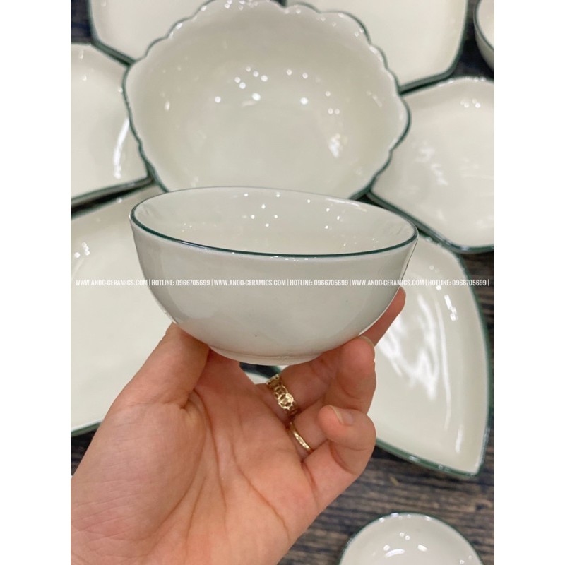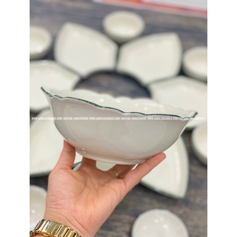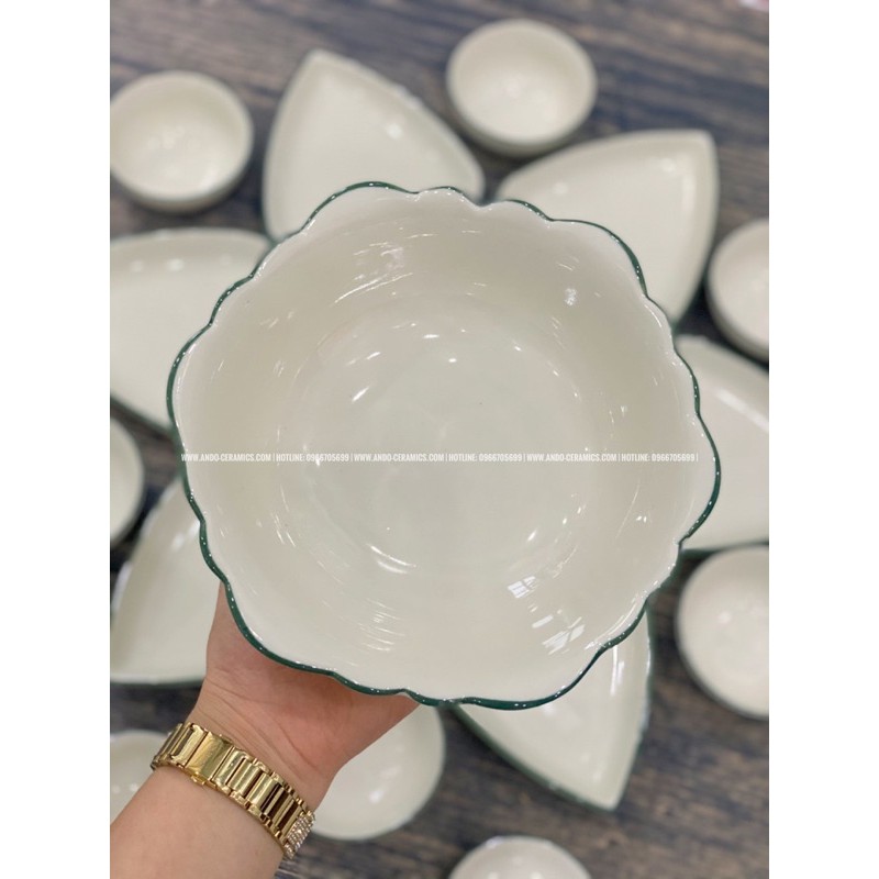 Nhà cửa & Đời sống > Bộ đồ bàn ăn > Tô || BỘ BÁT ĂN HOA MẶT TRỜI gốm Bát Tràng đầy đủ set 15 món - Mẫu cánh hình thoi kẻ chỉ xanhCòn hàng