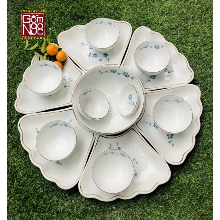BỘ BÁT ĐĨA GỐM GỐM SỨ BÁT TRÀNG CAO CẤP, BỘ ĐỒ ĂN HOA MẶT TRỜI, ẤM CHÉN, LỌ HOA