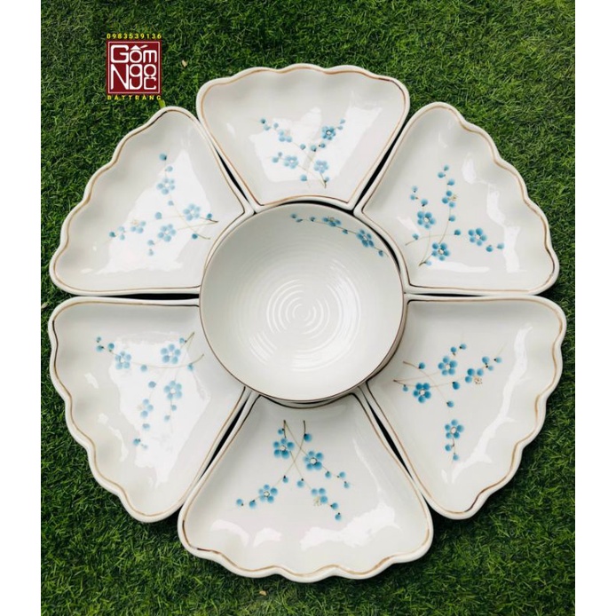 7 món gồm : 6 cánh đĩa và 1 bát tô ở giữa