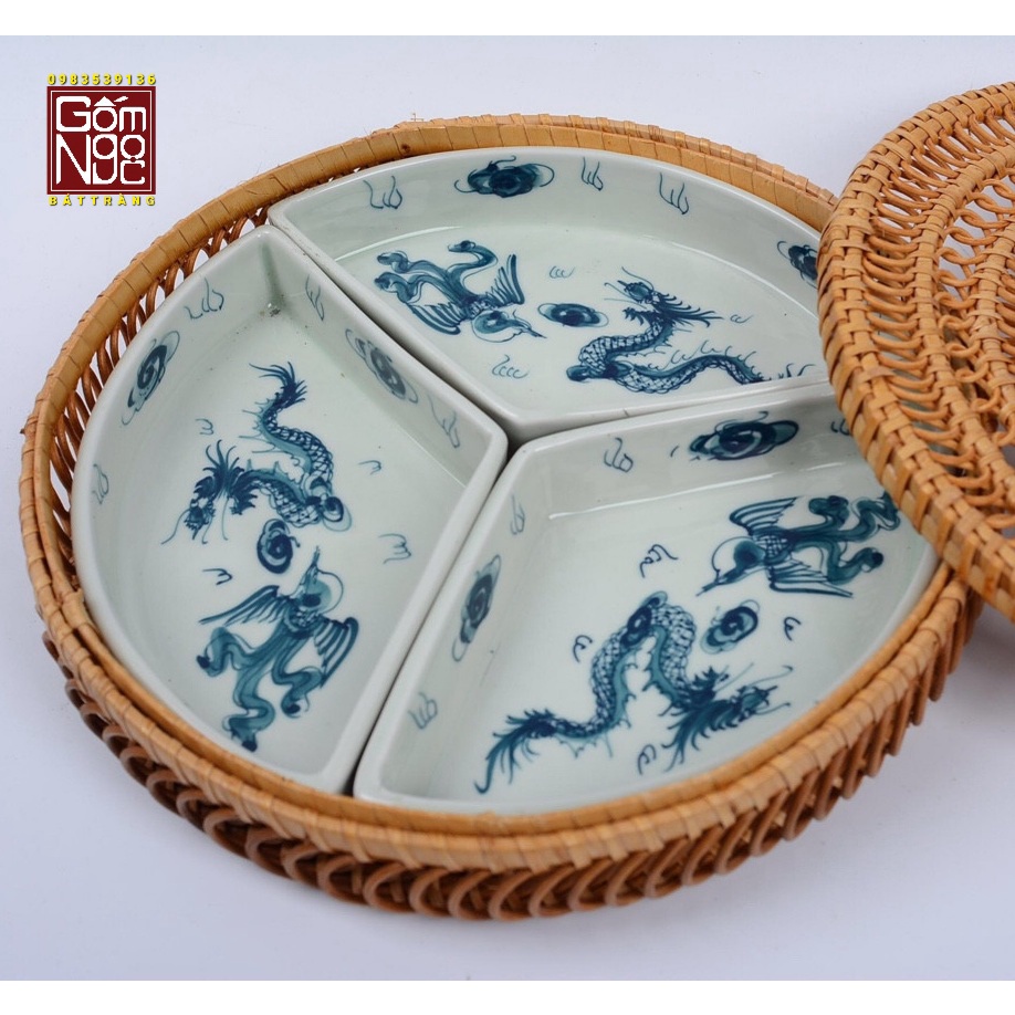 BỘ BÁT ĐĨA KHAY MÂY, BỘ ĐỒ ĂN GỐM SỨ BÁT TRÀNG