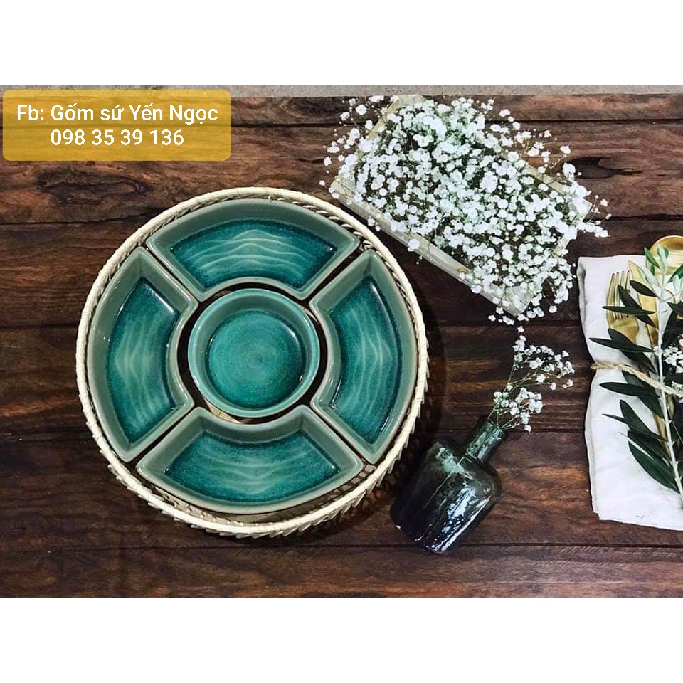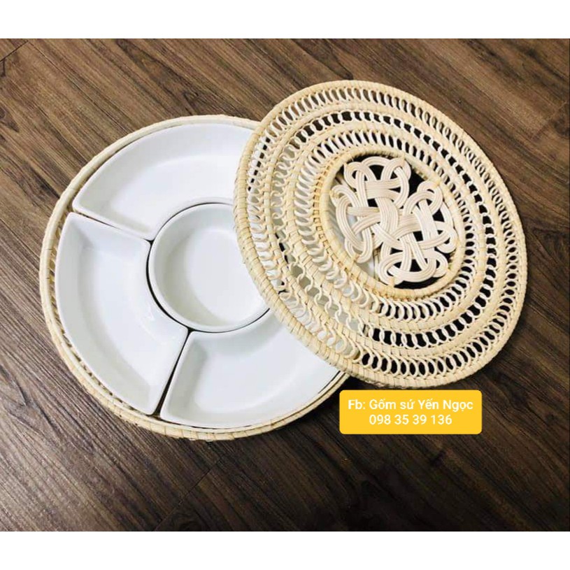 BỘ BÁT ĐĨA KHAY MÂY, BỘ ĐỒ ĂN GỐM SỨ Bát Tràng