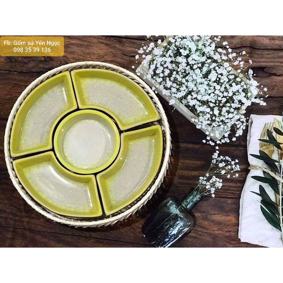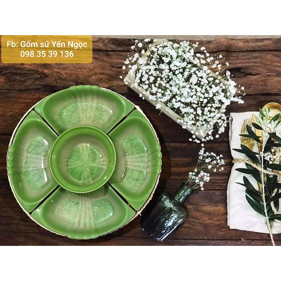 BỘ ĐỒ ĂN , khay mứt kẹo....cao cấp gốm sứ Bát Tràngđường kính 30cm: