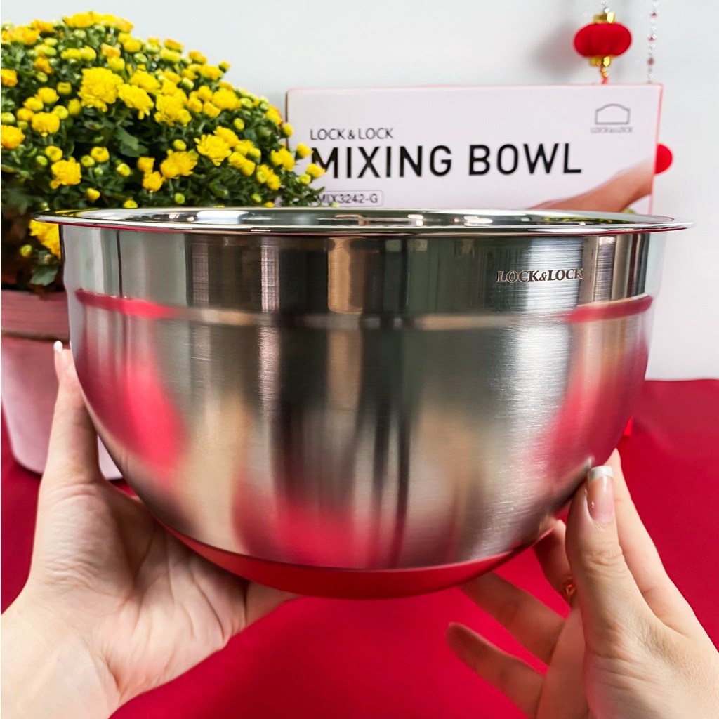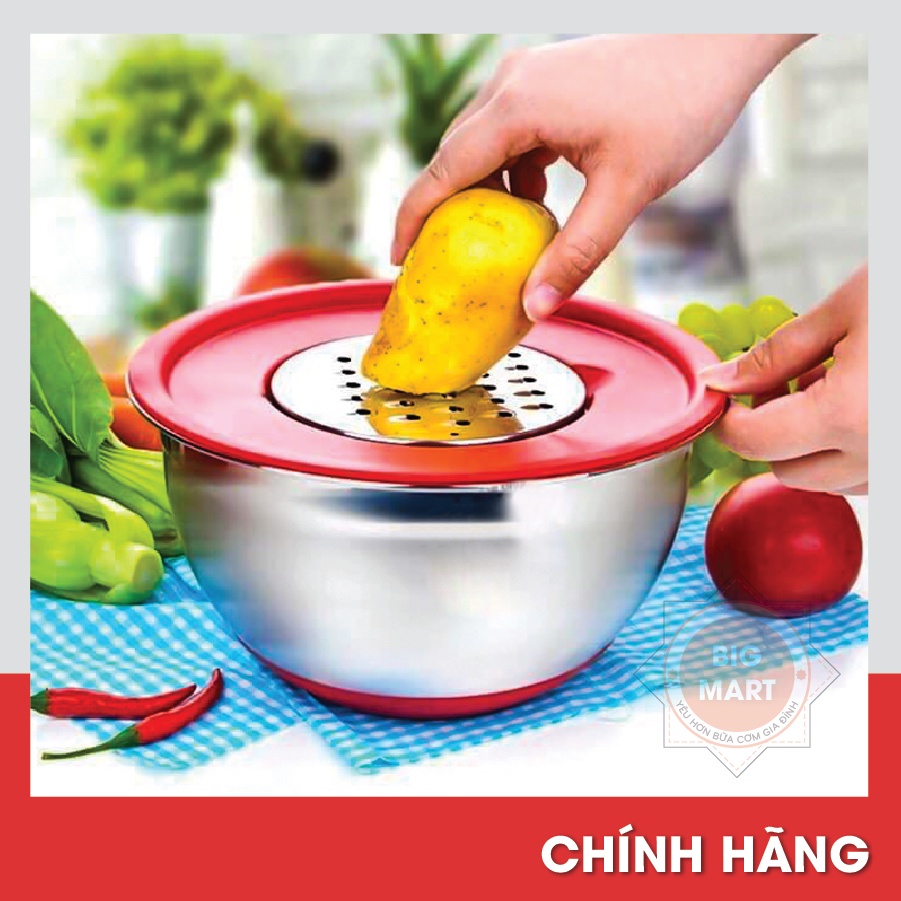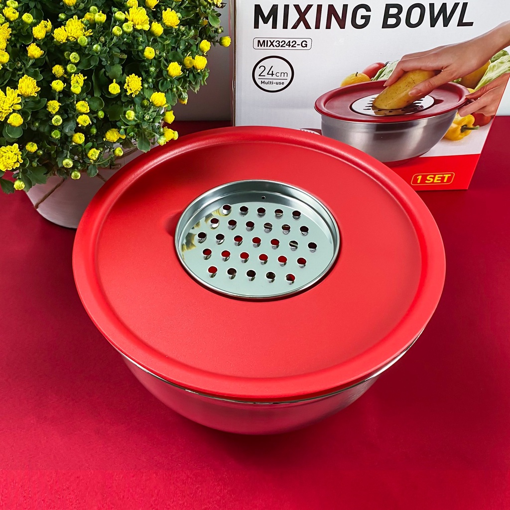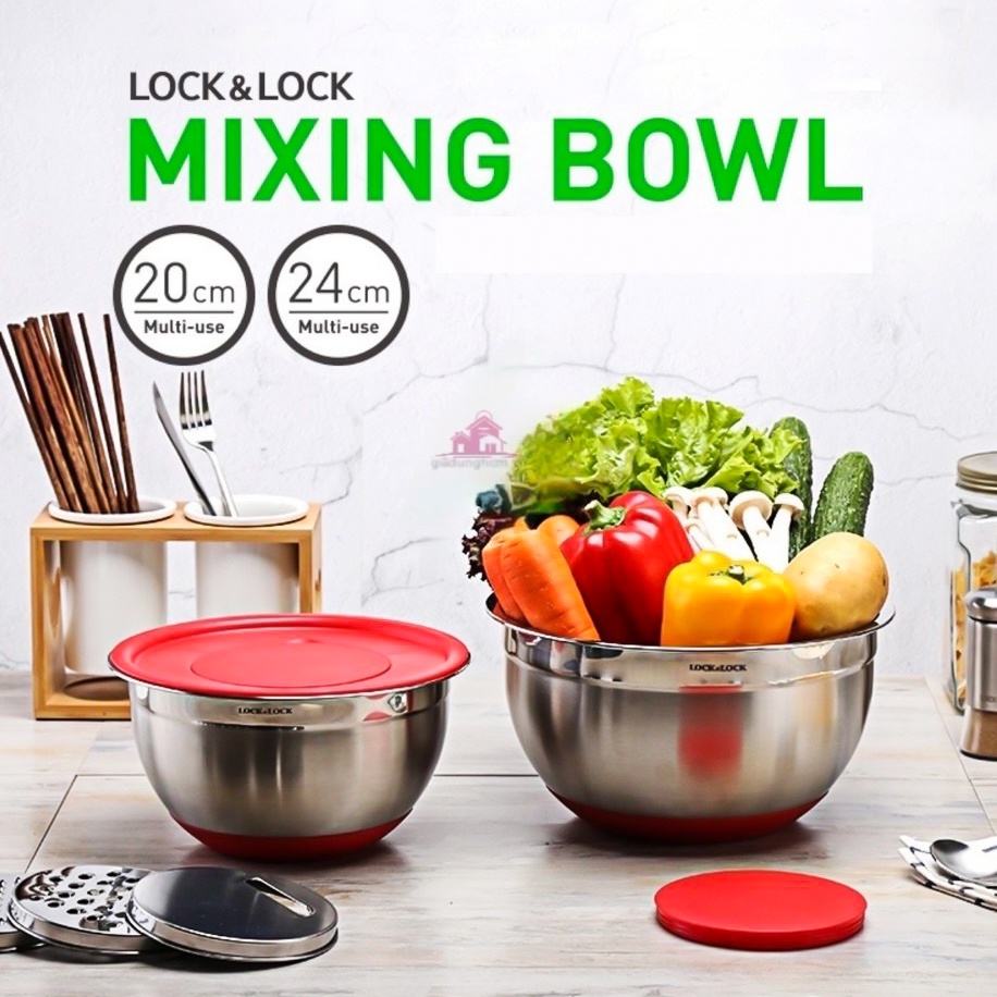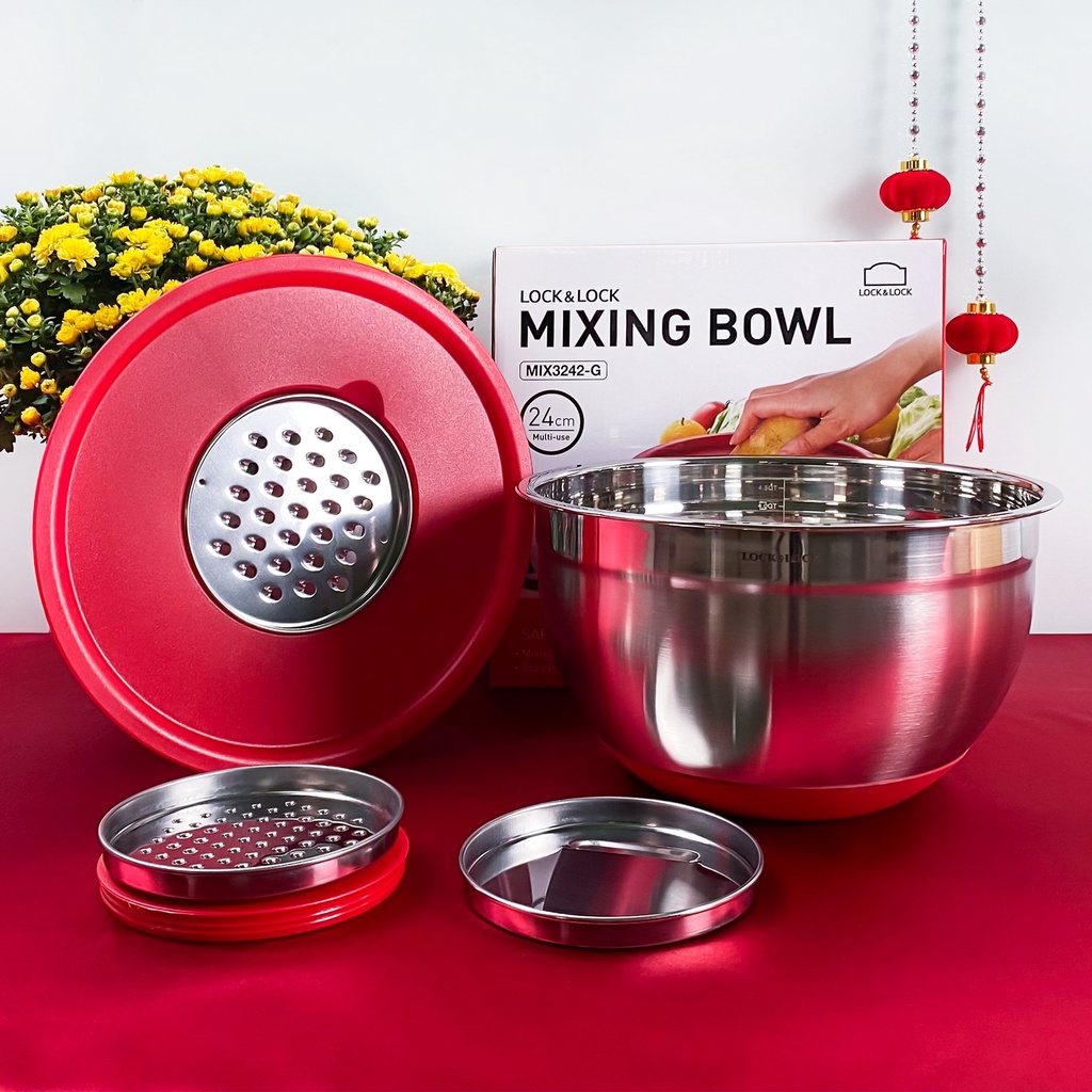 BỘ BÁT TRỘN INOX KIÊM BÀN MÀI 3 CHỨC NĂNG LOCK&LOCK size 20cm và 24cm (MIX3202, MIX3242)✔️Bộ tô trộn kiêm 3 chức năng: Mài, thái lát, cắt sợi dòng Mixing Bowl của lock&lock