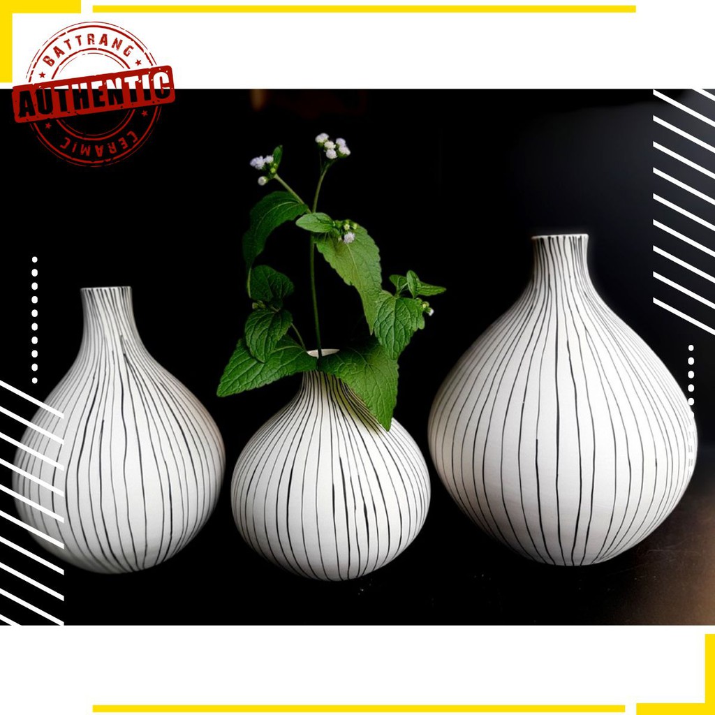 Nhà cửa & Đời sống > Trang trí nhà cửa > Bình trang trí || BỘ BÌNH GỐM KẺ SỌC, TRANG TRÍ NHÀ CỬA, SẢN XUẤT TẠI XƯỞNG GỐM SỨ AUTHENTIC BAT TRANGCòn hàng