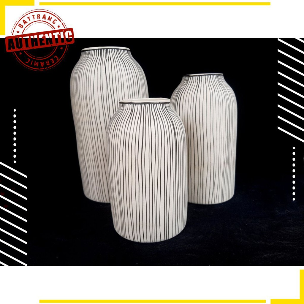 Nhà cửa & Đời sống > Trang trí nhà cửa > Bình trang trí || BỘ BÌNH TRỤ KẺ SỌC, SẢN PHẨM THỦ CÔNG, SẢN XUẤT TẠI XƯỞNG GỐM SỨ AUTHENTIC BAT TRANGCòn hàng