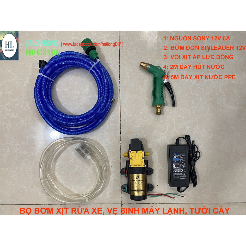 TRỌN BỘ SẢN PHẨM BAO GỒM:- 1 BƠM ÁP LỰC SINLEADER 12V - 4A (bơm xịt áp lực cực mạnh )