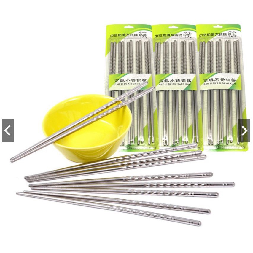 SÉT 10 ĐÔI ĐŨA HÀN QUỐC ĐẦU BỌC HỢP KIM SANG TRỌNGChất liệu: Sợi thủy tinh ( Đầu đũa có bọc hoa văn hợp kim màu Vàng hoặc Bạc)