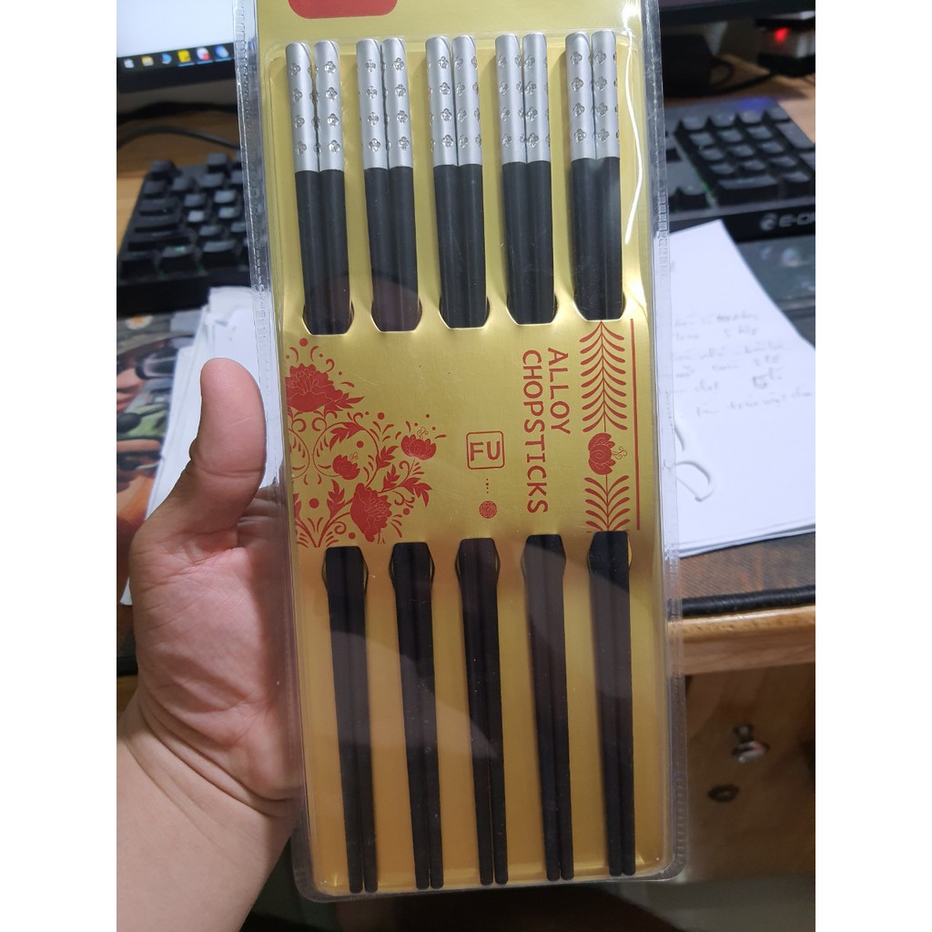 Dùng đũa trong bữa cơm từ lâu đã là một nét văn hoá trong ẩm thực của người Việt. Tuy nhiên làm sao để chọn được cho gia đình một đôi đũa vừa đẹp , lại thuận tiện cho việc gắp thức ăn lại không đơn giản . Hãy tham khảo mẫu đũa ăn hợp kim đầu bọc vàng cao cấp này nhé !