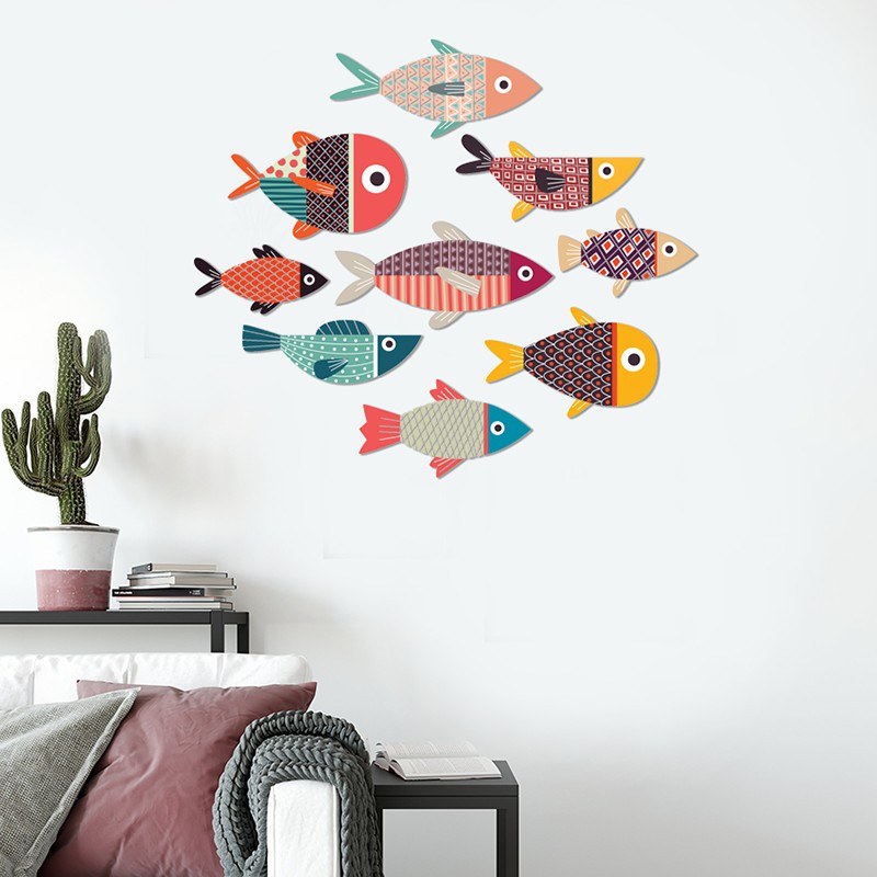 Bộ cá decor treo tường gồm : 9 chú cá sắc màu - Tặng kèm hình decan dán trang trí thêm sinh động.✔️ Đổi trả hàng nhanh nhất : BẤT KÌ SẢN PHẨM nào bị gãy vỡ DÙ LÀ LỖI CỦA HÃNG VẬN CHUYỂN, shop sẽ đền mới MIỄN PHÍ VÀ GIAO LẠI TẬN NHÀ CHO KHÁCH HÀNG