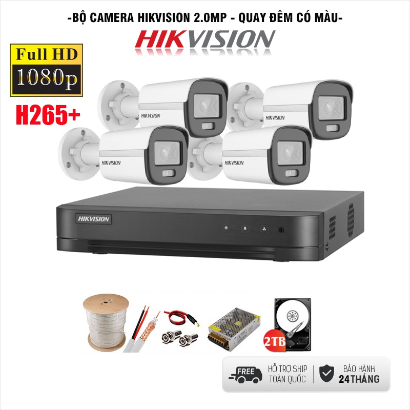 BỘ CAMERA GIÁM SÁT CÓ MÀU BAN ĐÊM HIKVISION 2.0MP -FHD 1080P, ĐỦ PHỤ KIỆN LẮP ĐẶT - BẢO HÀNH 2 NĂM