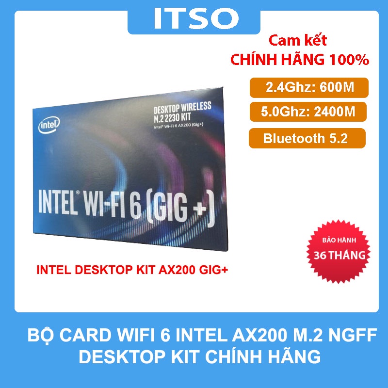 BỘ CARD WIFI INTEL AX200 GIG+ CHÍNH HÃNG CHO MÁY BÀN - BẢO HÀNH 36 THÁNG