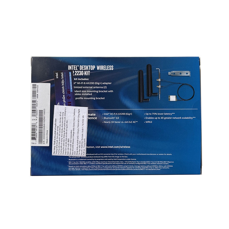 - HỘP SẢN PHẨM GỒM: CARD WIFI AX200NGW + ANTEN