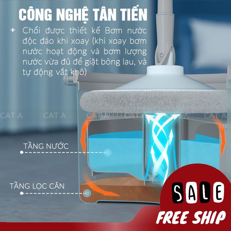 BỘ CÂY LAU NHÀ THÔNG MINH TỰ VẮT XOAY 360 ĐỘ - Tặng kèm bông lau Sạch gấp 3 lần chổi thường, lau dọn tiện lợi dễ dàng
