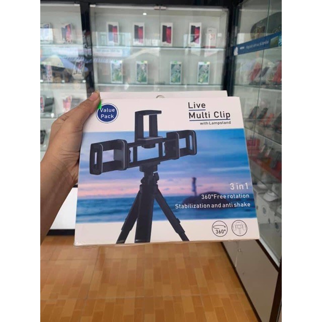 BỘ CHÂN ĐỠ LIVESTREAM KẸP 3 ĐIỆN THOẠI |
