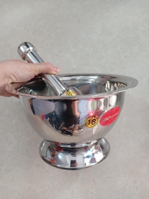 🌰Bộ sản phẩm gồm 1 cối và 1 chày làm hoàn toàn bằng inox 304 nguyên khối đúc đặc, bền, đẹp, cực kỳ chắc chắn, cầm nặng tay. Không như các loại inox ruột rỗng, mỏng nhẹ tràn lan trên thị trường.