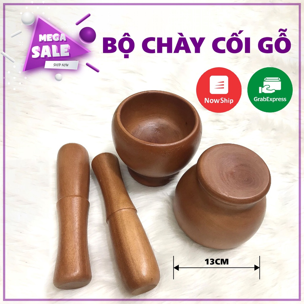 Công dụng: giã hành, giã tỏi, giã gừng....Bộ Cối chày bằng gỗ tiện dụng