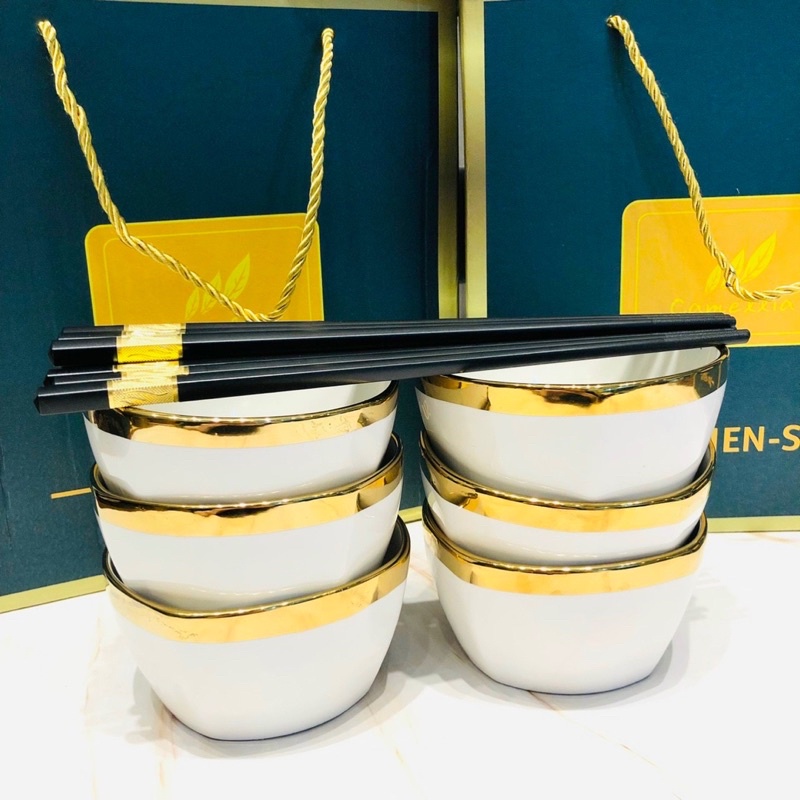 Bộ 6 bát kèm đũa cực kì sang trọng đảm bảo bát đẹp thì cơm sẽ ajingonnnn lun 🤪