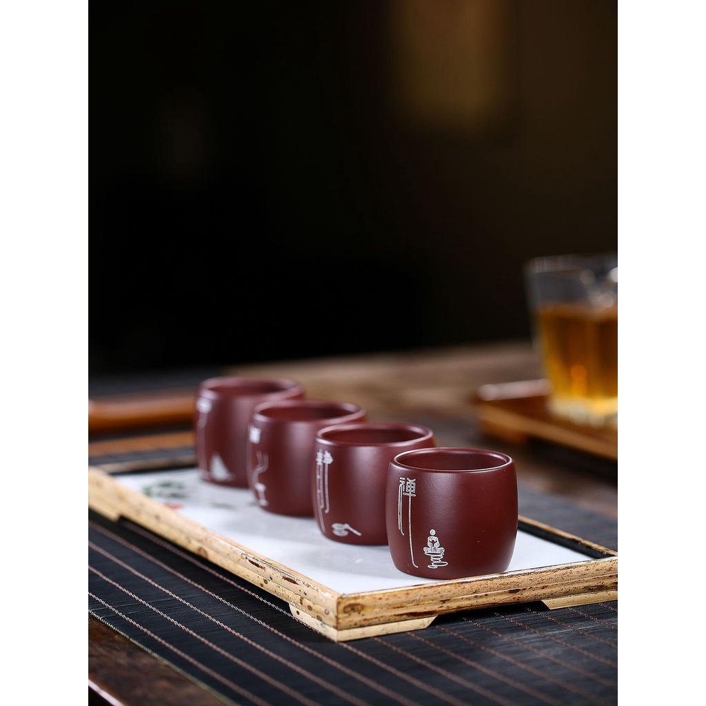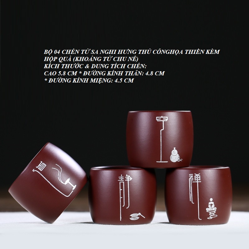 BỘ CHÉN TỬ SA NGHI HƯNG THỦ CÔNG HỌA THIỀN 80 ML (BỘ 4 CHÉN KÈM HỘP QUÀ)