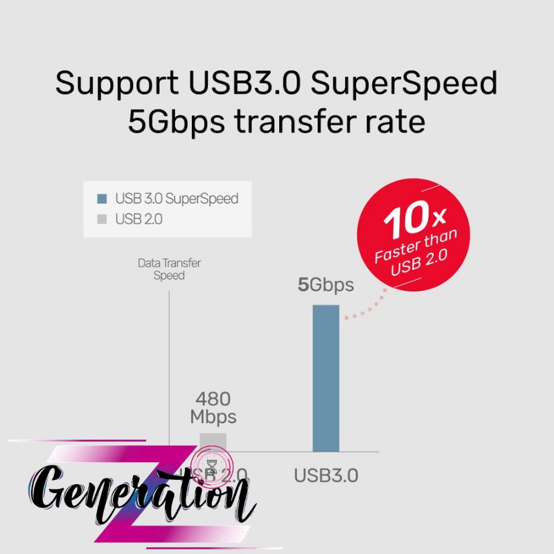 USB3.0 SuperSpeed data transfer (5Gbps), backward compatible with USB2.0/1.1.
