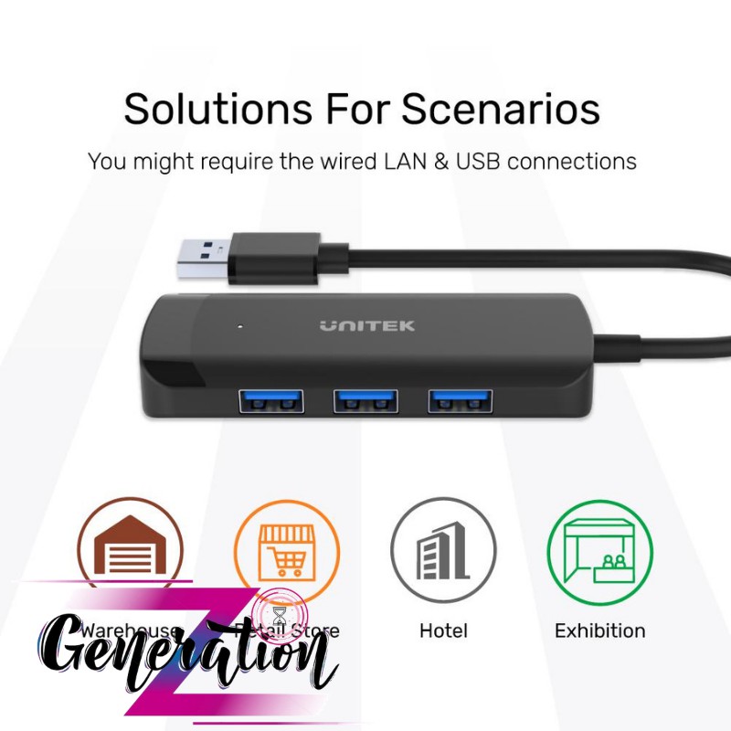 BỘ CHIA 3 CỔNG USB 3.0 + LAN UNITEK H1111A - HUB USB 3P 3.0 + LAN UNITEK H1111A