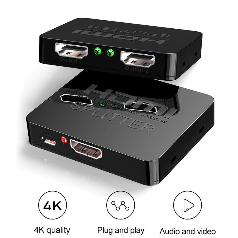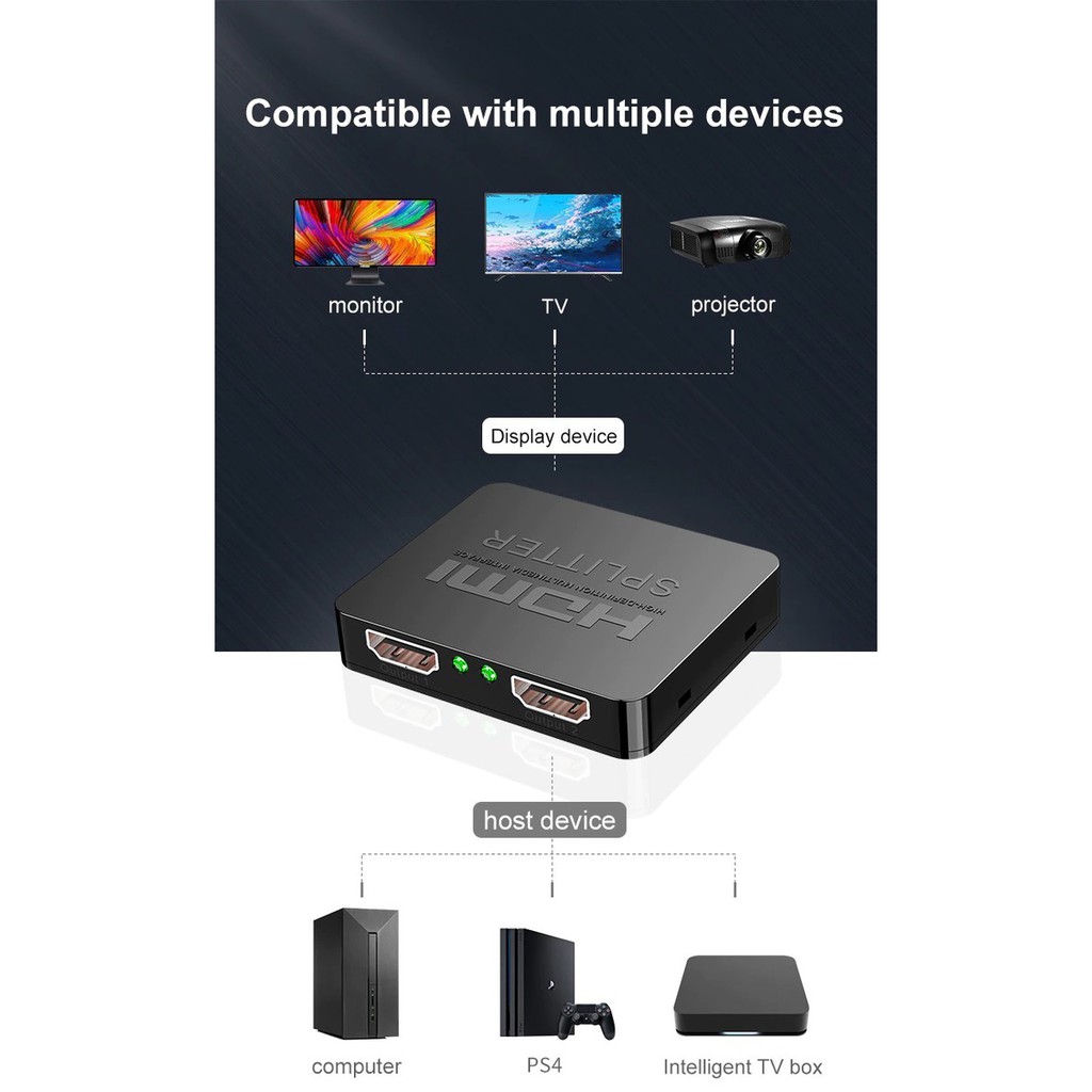 Thiết Bị Điện Gia Dụng > Tivi & Phụ kiện > Tivi box & Đầu thu kĩ thuật số || BỘ CHIA HDMI 1 RA 2 TỪ 1 NGUỒN PHÁT RA 2 TIVI, MÀN HÌNH LCD CHẤT LƯỢNG 4K VIDEO SWITCH HDMI SWITCHER SPLITTER 1X2Còn hàng