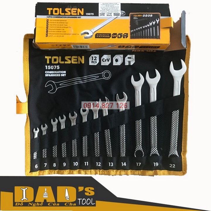 BỘ CHÌA KHÓA VÒNG MIỆNG 12 CHI TIẾT TỪ 6-22MM HÃNG TOLSEN 15075• Hãng Tolsen