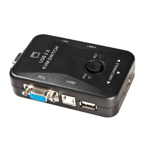 Thiết bị KVM switch bao gồm 1 bộ điều khiển hiển thị bàn phím chuột cho 2 máy tính, cổng USB 2.0,