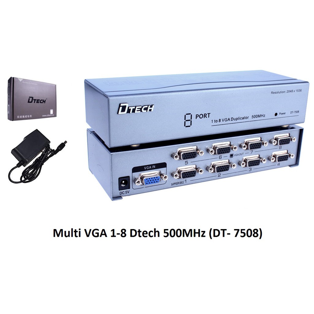BỘ CHIA TÍN HIỆU VGA LCD TỪ 1 CPU SANG 8 MÀN HÌNH TẦN SỐ 500MHZ DTECH DT 7508
