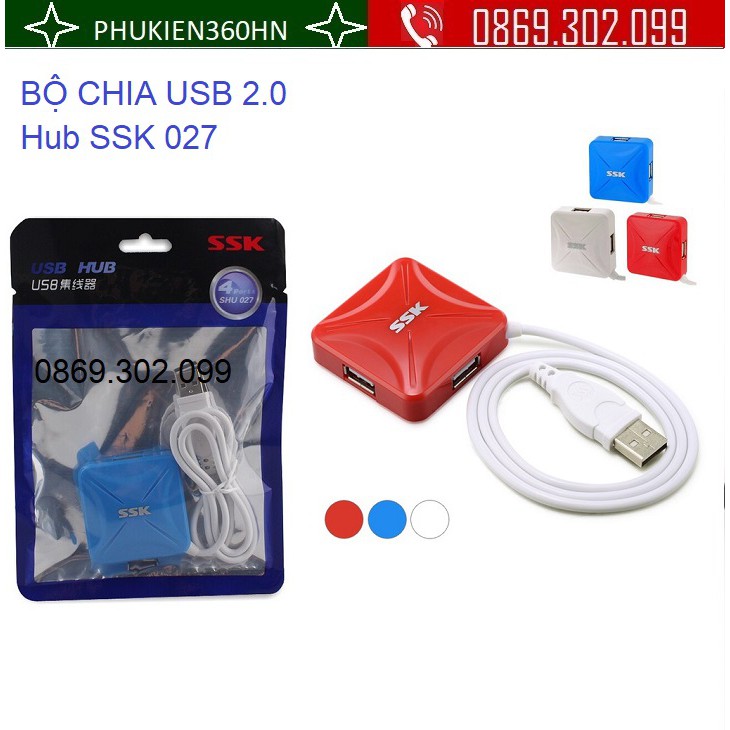 Máy tính & Laptop > Phụ Kiện Máy Tính > Bộ chia cổng USB & Đọc thẻ nhớ || BỘ CHIA USB 2.0 Hub SSK 027-Hàng chính hãngCòn hàng