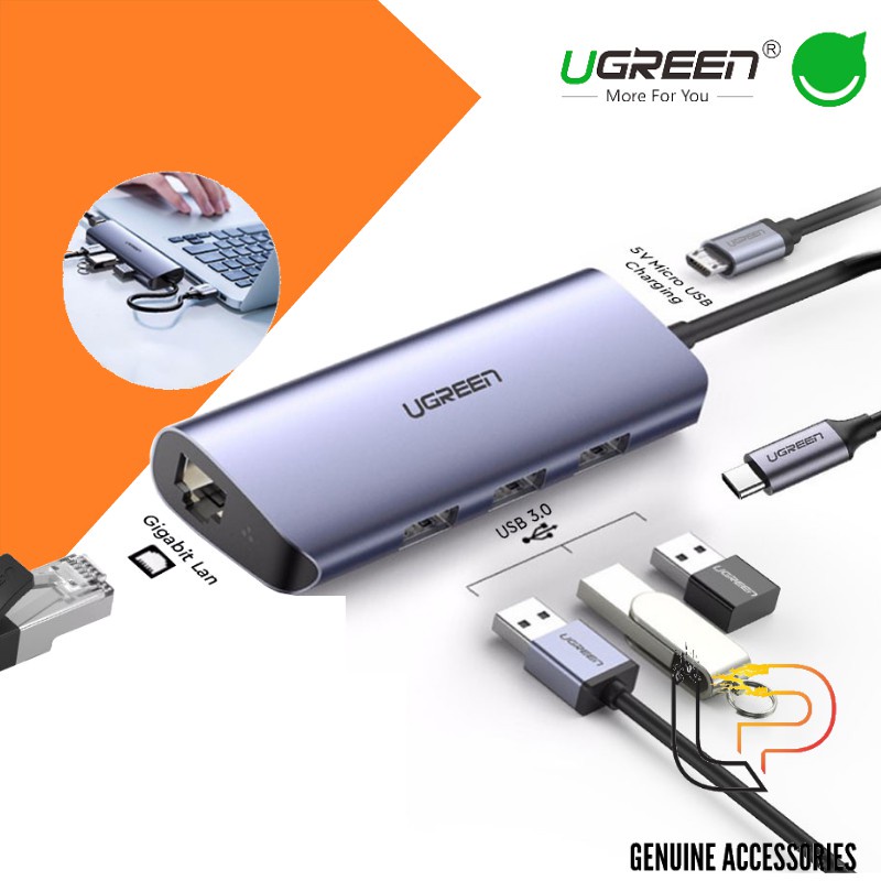 Máy tính & Laptop > Phụ Kiện Máy Tính > Bộ chia cổng USB & Đọc thẻ nhớ || BỘ CHIA USB TYPE-C RA 3 USB 3.0+LAN 1GB UGREEN 60718 Chính Hãng CM252 (cổng trợ nguồn micro USB)Còn hàng