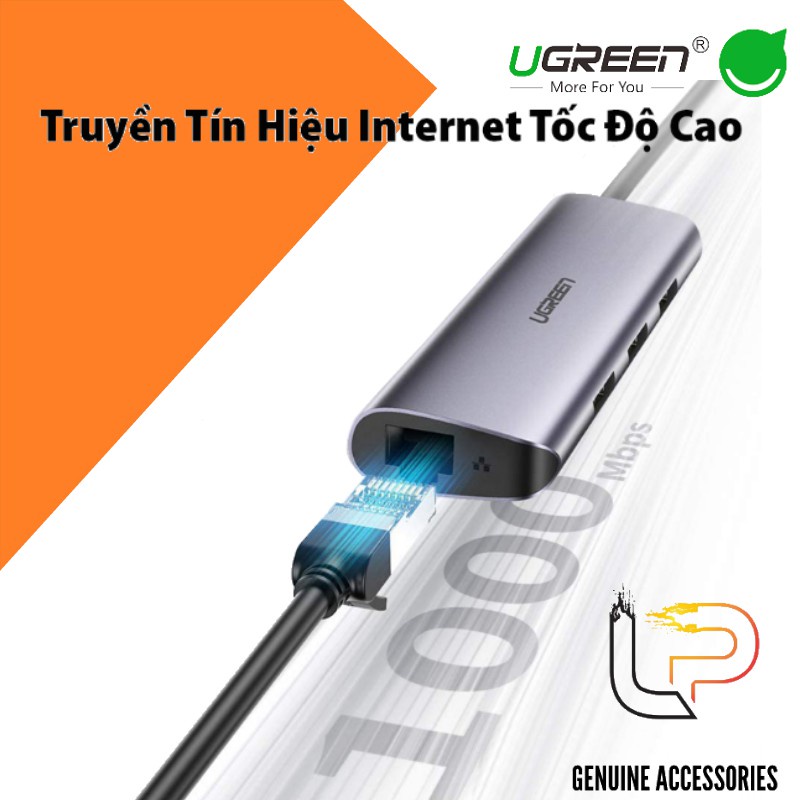 USB-C to LAN kèm HUB USB 3.0 3 Cổng, cao cấp Ugreen 60718USB-C to LAN kèm HUB USB 3.0 3 Cổng cao cấp Ugreen 60718 là phụ kiện cao cấp chính hãng giúp kết nối máy tính, laptop, điện thoại, máy tính bảng của bạn với mạng internet thông qua một cổng mạng lan RJ45 hỗ trợ ethernet tốc độ cao lên đến 1000Mbps và mở rộng thêm 3 cổng USB 3.0 dùng để kết nối các thiết bị ngoại vi như chuột, bàn phím, usb, ổ cứng... Giải pháp lý tưởng để trang bị thêm cổng mạng lan và usb 3.0 cho các nhu cầu văn phòng, giải trí...
