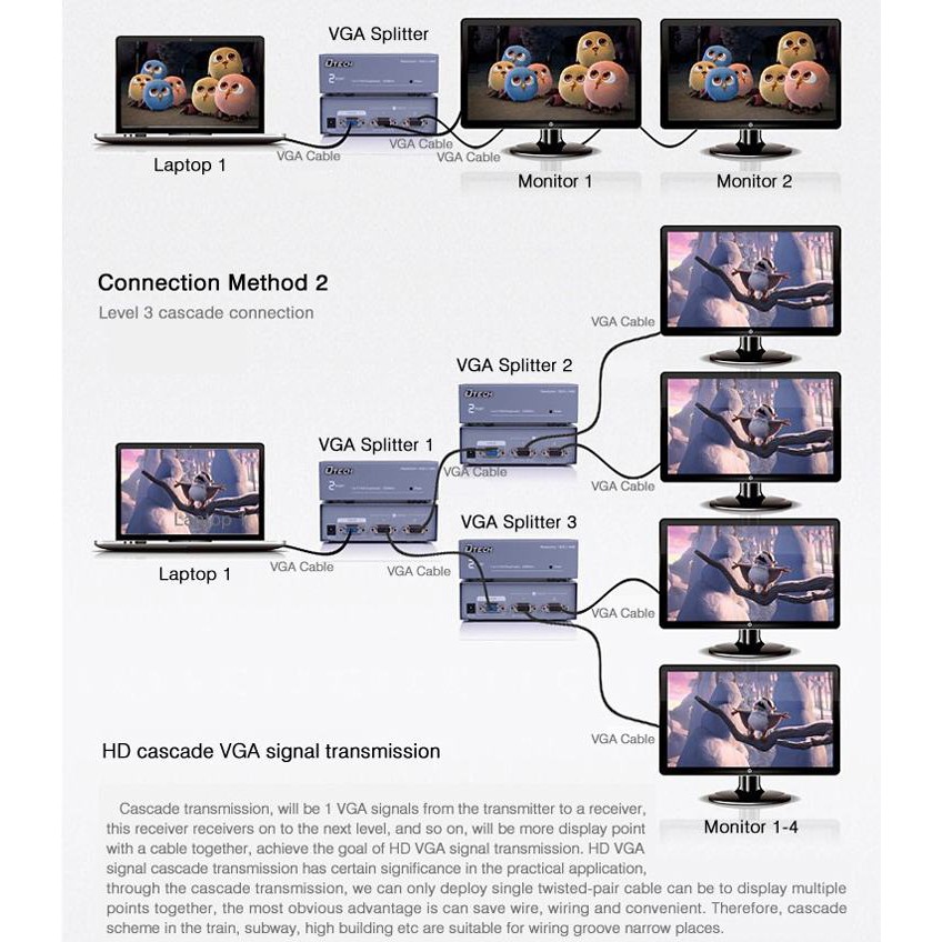 - Khoảng cách truyền dẫn :40 mét, sử dụng cáp VGA chất lượng cao lên đến mét