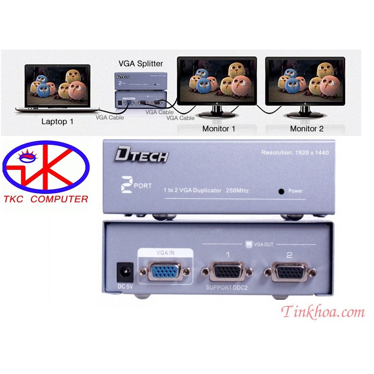 Máy tính & Laptop > Thiết Bị Mạng > Bộ Chuyển Mạch KMV || BỘ CHIA VGA 1 RA 2 Dtech DT7252 DT-7252 ( 2 màn hình dùng chung 1 máy tính)Còn hàng