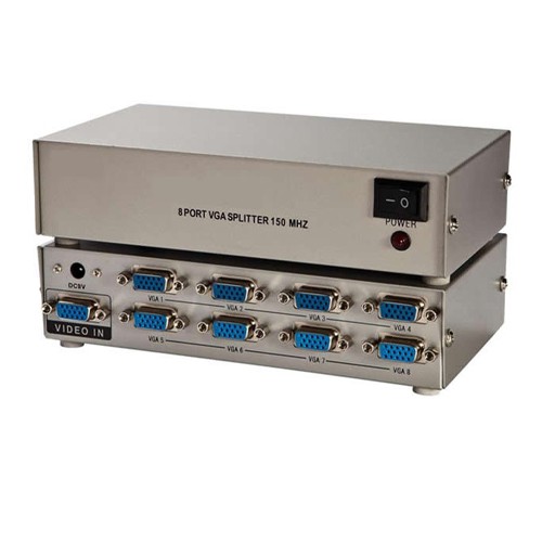 Bộ Splitter VGA dùng để mở rộng thêm tín hiệu VGA ra 8 cổng với băng thông lên đến 350 MHz. Sản phẩm thường được dùng cho cho thị trường chứng khoán, showroom siêu thị, giáo dục và các ngành công nghiệp khác vvv…
