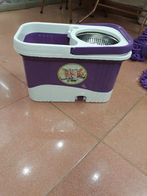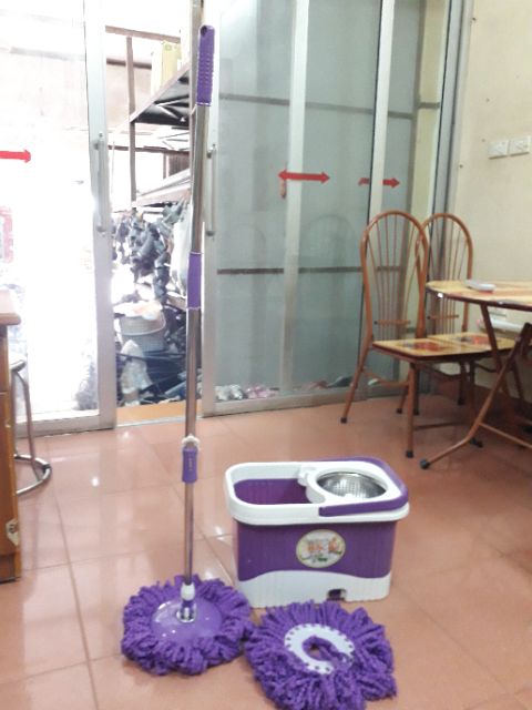 Chổi 360° lồng inox , 2 bông lau . Thùng chậu to dễ dàng khi lau chùi nhà cửa.
