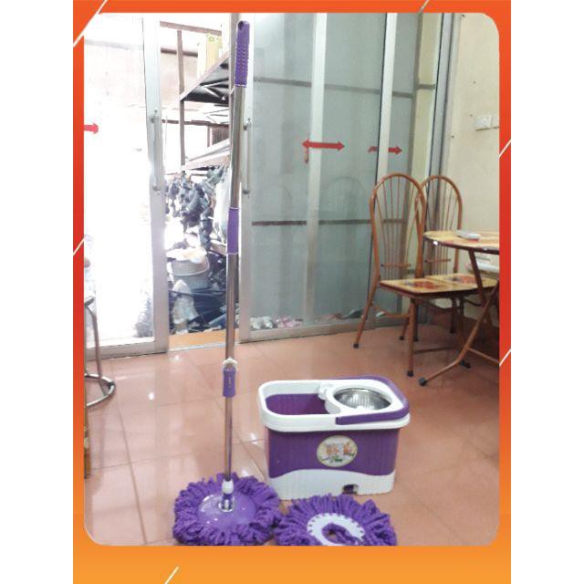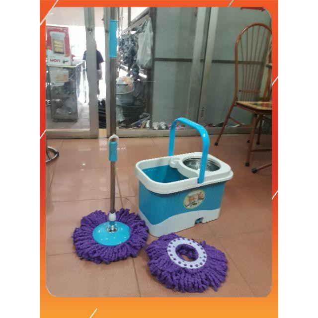 Chổi 360° lồng inox , 2 bông lau . Thùng chậu to dễ dàng khi lau chùi nhà cửa.
