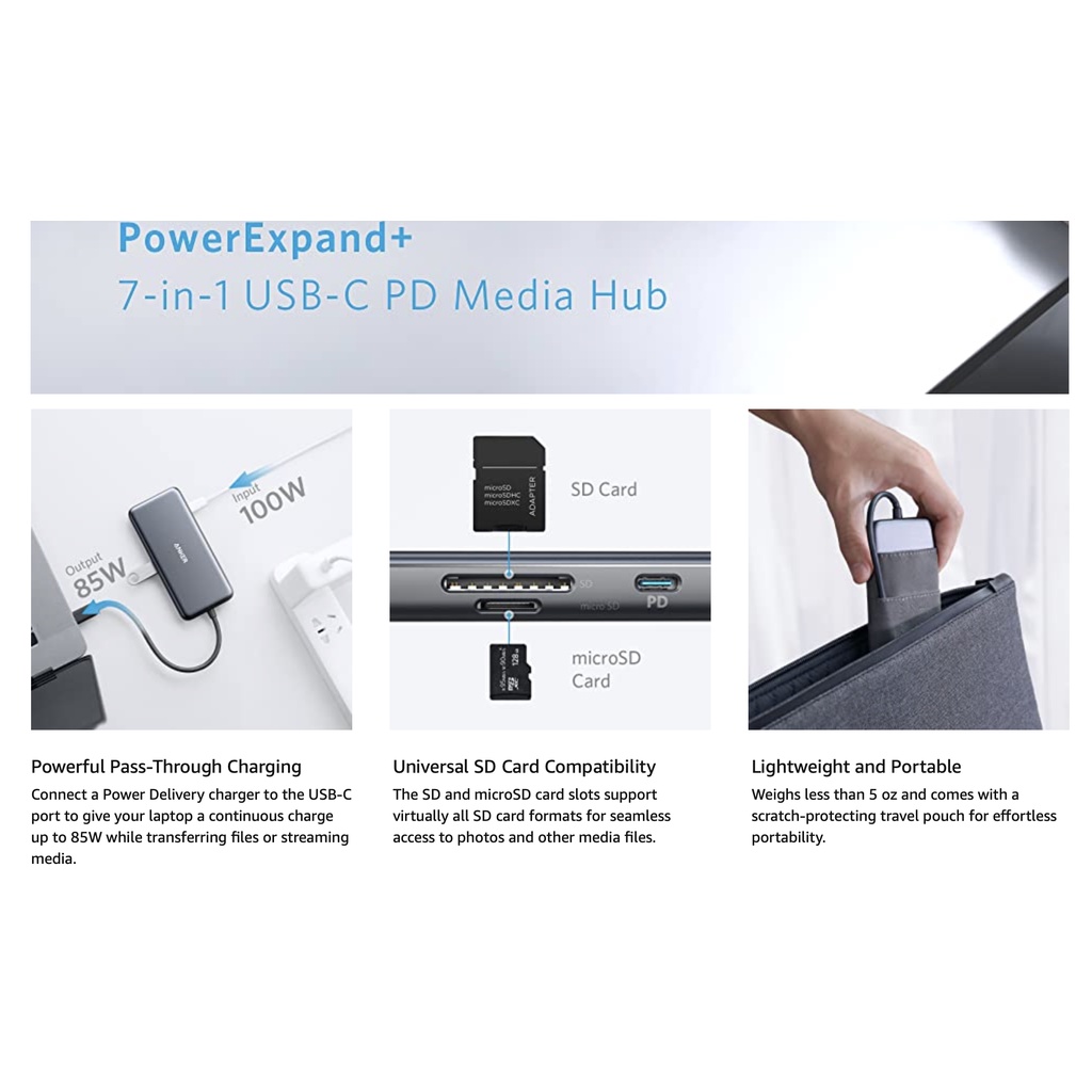 Giới thiệu BỘ CHUYỂN/CHIA Anker USB-C 7 TRONG 1, 4K USB-C HDMI, CỔNG SẠC 100W, 2 CỔNG USB-A 5Gbps, ĐỌC THẺ SD & Micro SD, NHẬP MỸ