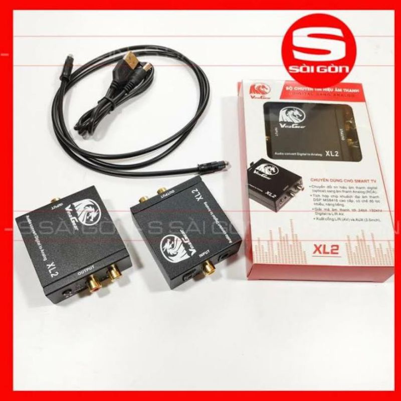 VINAGEAR XL2 – Bộ Chuyển Quang Âm Thanh Digital ra Analog – Công Suất Lớn, Có Cổng Out L/R và 3.5mm AUX Hiện nay trên thị trường phần lớn các sản phẩm Smart TV thế hệ mới đều bỏ cổng âm thanh out L/R hoặc 3.5mm, điều này thật sự là bất tiện vì chúng ta không thể xuất âm thanh từ TV ra hệ thống loa 2 kênh của gia đình với mục đích nghe nhạc, hát Karaoke trực tuyến ngay trên Smart TV. Để khắc phục vấn đề trên các bạn chỉ cần sử dụng bộ chuyển đổi âm thanh DAC từ tín hiệu Digital (Quang) ra tín hiệu Analog, vì chắc chắn 100% các tivi thế hệ mới đều có trang bị cổng âm thanh quang (optical hay còn gọi SPDIF). Vinago xin giới thiệu bộ chuyển đôi râm thanh DAC VINAGEAR XL2 thế hệ mới được trang bị chip giải mã âm thanh DSP MS8416, đây là chip giải mã âm thanh cao cấp chuyên dụng để chuyển đổi tín hiệu âm thanh digital ra analog, với khả năng nâng tiếng, khuếch đại âm thanh và lọc nhiễu tốt, giúp bạn có thể thoải mái nghe nhạc và hát Karaoke trực tuyến trên TV Smart của gia đình bạn. DAC Vinagear XL2 giải mã âm thanh 24bit 192khz giúp bạn hoàn toàn yên tâm chất lượng âm thanh số digital sang analog qua đường AV L/R 2 kênh. DAC Vinagear XL2 phù hợp chuyển đổi tín hiệu âm thanh từ cổng Optical/ SPDIF và cổng đồng trục Coaxial trên Smart TV, thiết bị Media player, Android box, HDplayer, Xbox, PS… ra hệ thống âm thanh loa 2 kênh cổng L/R hoặc AUX 3,5mm. Sản phẩm Vinagear XL2 được phân phối bởi VINAGOGiá REALIS