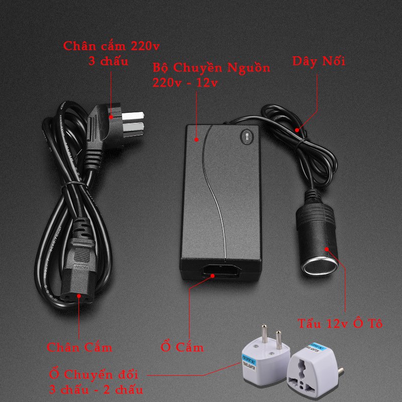 - Bộ chuyển đổi nguồn điện 220V sang 12V sẽ giúp sử dụng các phụ kiện, đồ chơi ô tô như máy hút bụi, máy bơm lốp, tai nghe, bộ lọc khí... ngay tại nhà.