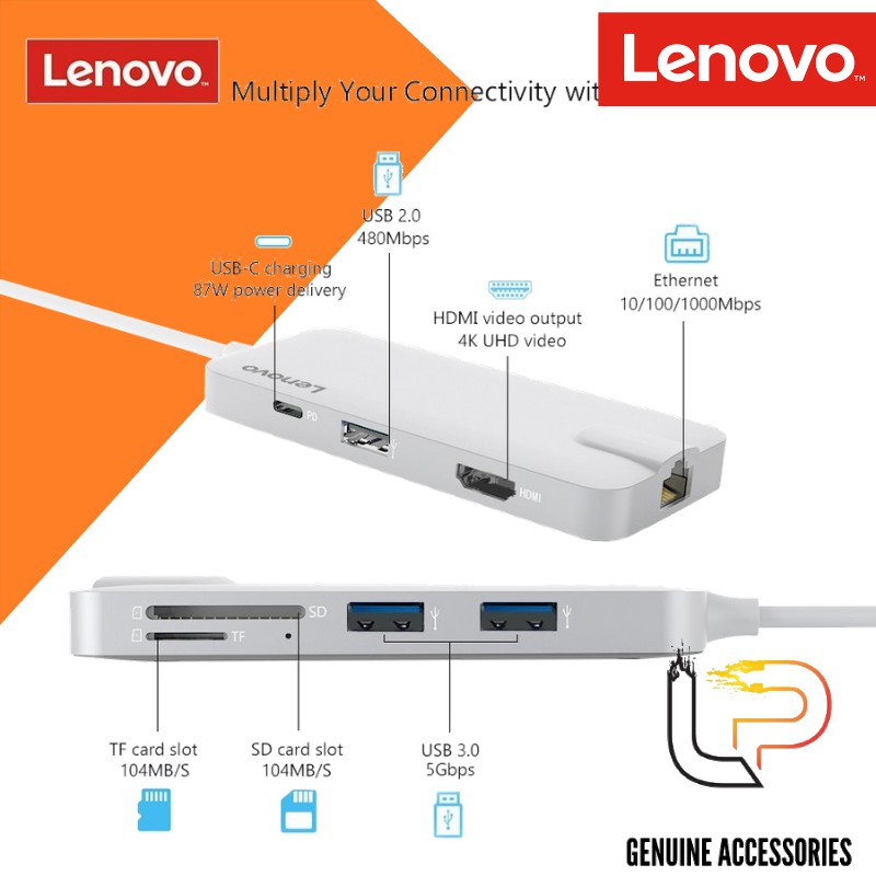 MULTI HUB TYPE-C TO 2 USB 3.0 + USB 2.0 + HDMI + LAN + TF/SD LENOVO (C106SL)TYPE-C -> 2 USB 3.0 + USB 2.0 + HDMI + LAN + TF/SD LENOVO (C106SL)