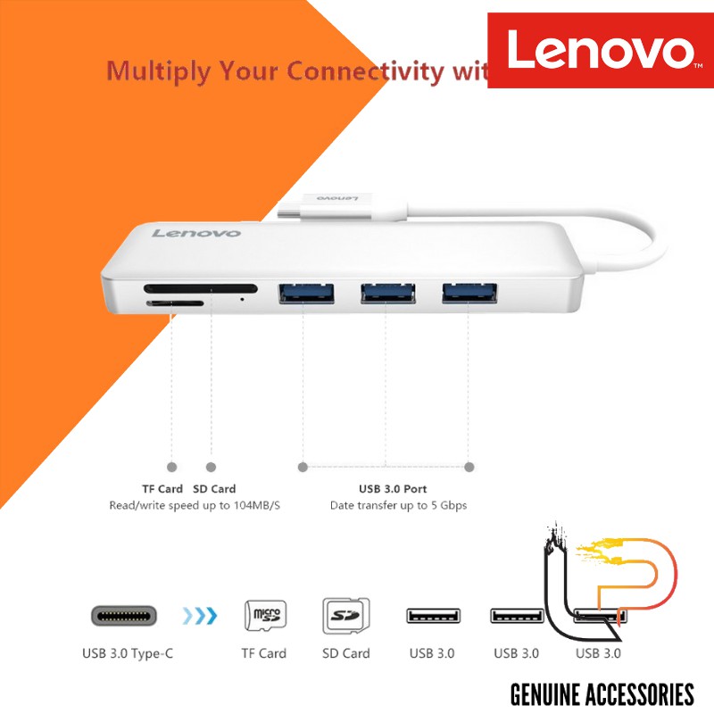 Máy tính & Laptop > Phụ Kiện Máy Tính > Bộ chia cổng USB & Đọc thẻ nhớ || BỘ CHUYỂN USB TYPE-C RA 3 USB 3.0 + SD + TF LENOVO C605SL - MULTIPORT HUB TYPE-C -> 3 USB 3.0 + SD + TF LENOVO C605SLCòn hàng