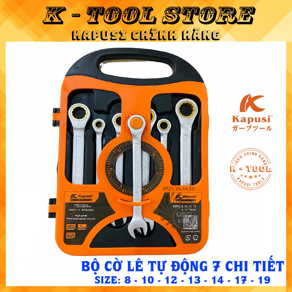 BỘ CỜ LÊ (CLE) VÒM MIỆNG TỰ ĐỘNG ĐẢO CHIỀU 7 CHI TIẾT TỪ 8-19MM KAPUSI JAPAN - BỘ CHÌA KHÓA SỬA CHỮA XE
