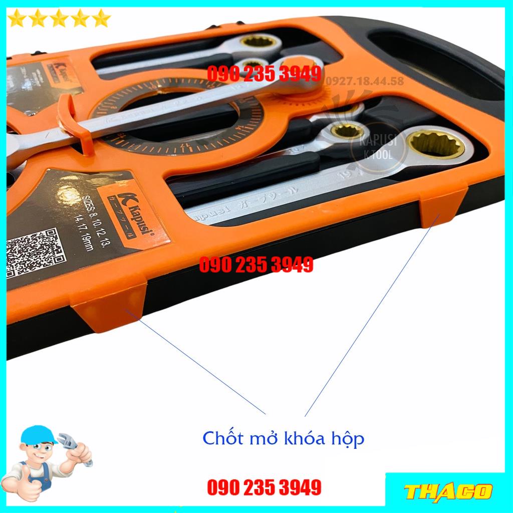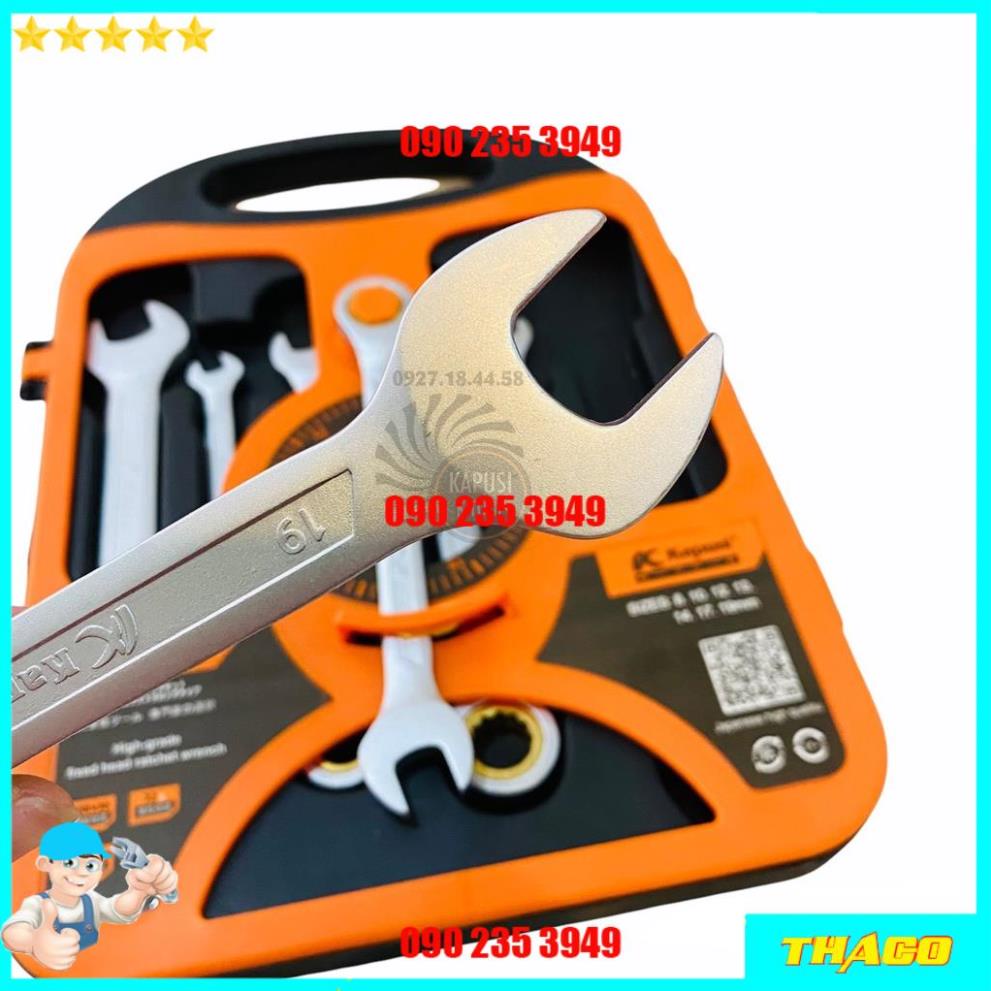 BỘ CỜ LÊ (CLE) VÒM MIỆNG TỰ ĐỘNG ĐẢO CHIỀU 7 CHI TIẾT TỪ 8-19MM KAPUSI JAPAN - BỘ CHÌA KHÓA SỬA CHỮA XE