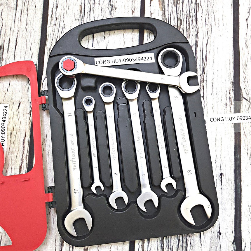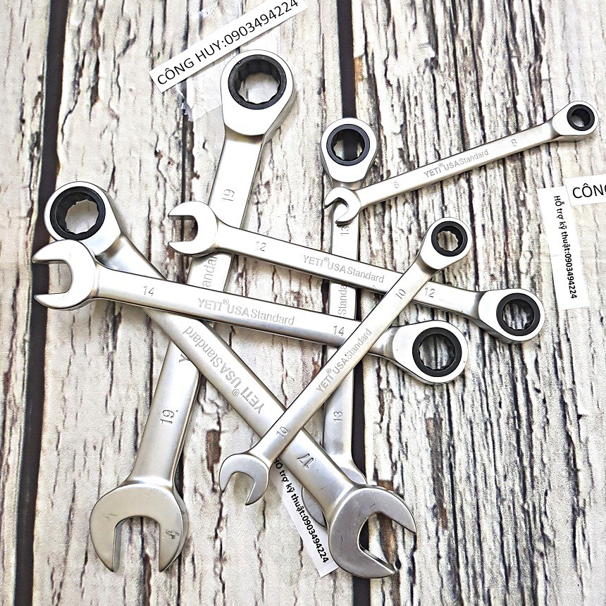 BỘ CỜ LÊ VÒNG MIÊNG ĐA NĂNG TỰ ĐỘNG YETI CAO CẤP 8-19MMCó 7 cây 8,10,12,13,14,17,19 mm kèm hộp đựng bảo quản
